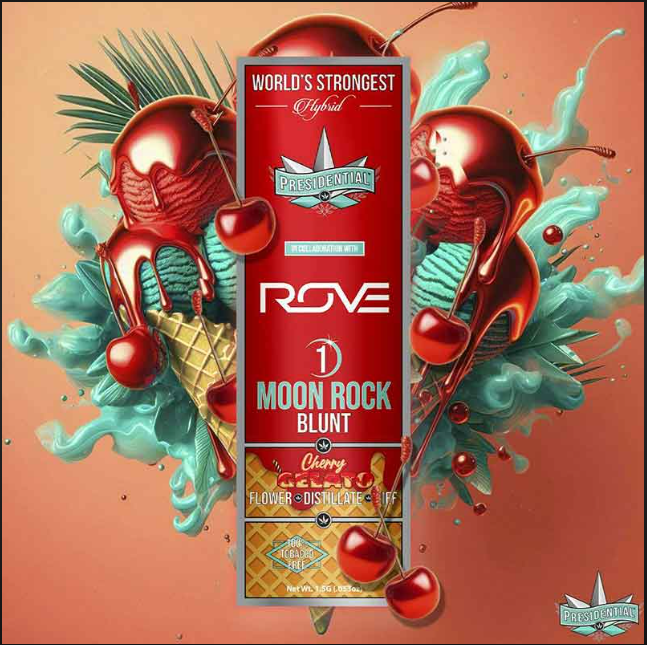 Cherry Gelato -Hybrid- 36.03% THC | Rove Presidential Moon Rock (Infused-Preroll) 1g | Dumbo Electric -jj12 middle