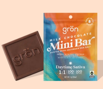 Rise and shine with a bite of smooth Fair Trade milk chocolate dusted with Jacobsen sea salt. Infused with CBG and THC in a 1:1 ratio, the daytime sativa effects will keep you lifted all day long. 38% Cacao • Soy-Free • Gluten-Free • Infused w/ Full-Spectrum Rosin Blend. 1/10 BAR PER SERVING | 10 SERVINGS PER PACKAGE