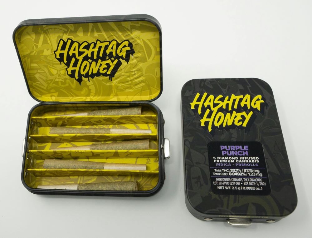 purple punch hybrid 5 diamond infused premium pre rolls 25g hashtag honey ll5