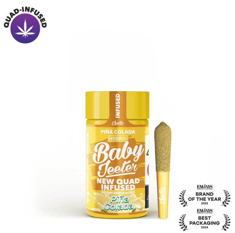 pina colada hybrid 3981 thc baby jeeter new quad infused 3981 tac pre roll 5pk 25g jeeter nn4 front