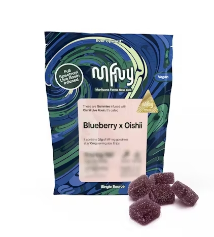 A must for edible lovers, these palate-pleasing Blueberry x Oishii gummies are unlike any other edibles you’ve tried. Our vegan, full-spectrum, cultivar-specific gummies are infused with MFNY’s premium Oishii live rosin extract. Superior to distillate, live rosin is made via solventless extraction from premium fresh frozen plants, preserving all the natural terpenes. We use the minimum amount of sugar to highlight the earthy candy flavor profile of the Oishii, paired with natural flavors of blueberry.