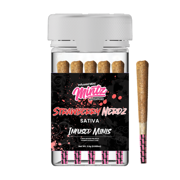 Strawberry Nerdz -Sativa- 16.53% THC | 5pk 2.5g (Infused Pre-Rolls) | Mintz -k8 middle