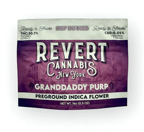 Revert captures the legendary indica vibe with their Granddaddy Purp Infused Preground Flower, a 14g pouch that’s both potent and convenient. This kief-infused classic hits with rich grape and sweet berry flavors balanced by earthy spice, bringing back that nostalgic Purple Kush lineage. Expect a heavy body high that melts away stress, soothes the mind, and eases you into deep relaxation or restful sleep. Perfect for winding down with friends in Sunset Park, Brooklyn or enjoying a solo night of calm in Tottenville, Staten Island.